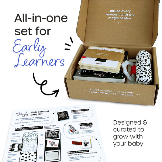 Quiggly High Contrast Baby Toys make such a perfect gift for any little one! I absolutely love this set not only is it beautifully made with great quality, but it’s also thoughtfully designed to support early development.